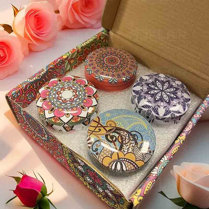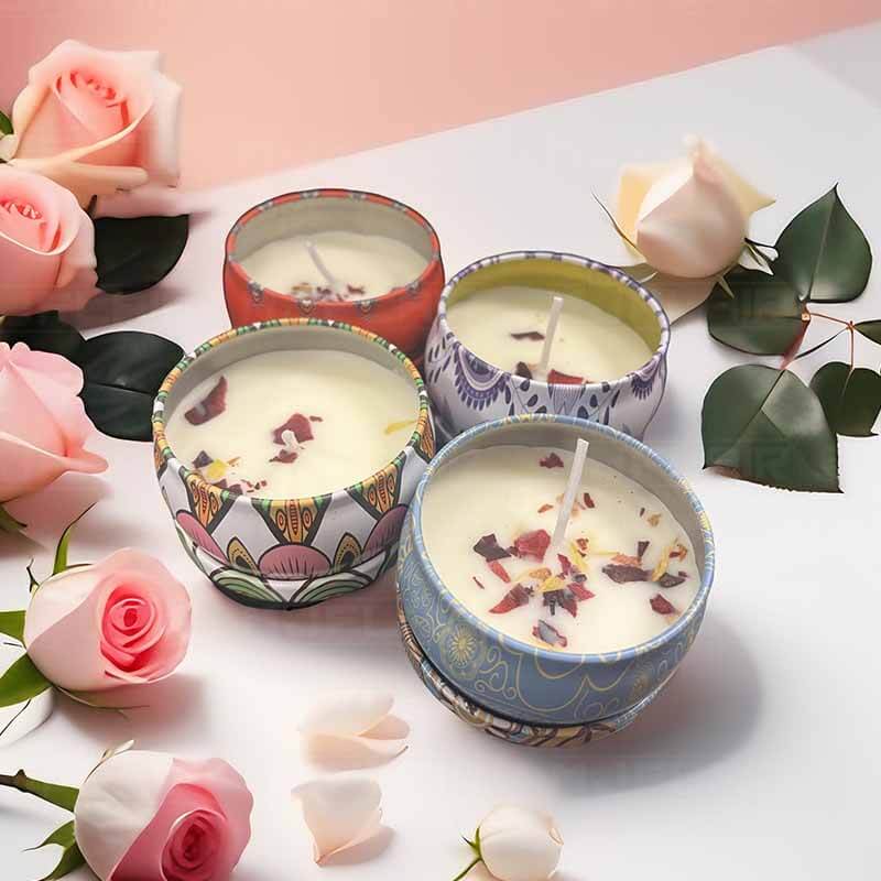 每個香氛蠟燭圓鐵盒裝,約6x4cm, 中國製