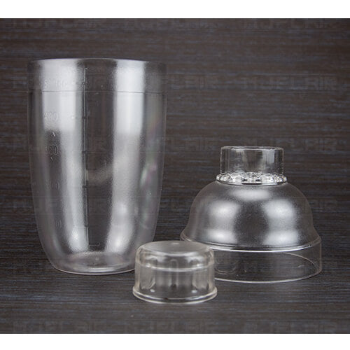 塑膠雪克杯除了價格優勢之外,透明材質讓你在練習雪克技術中關於冰塊很有幫助,你可以清楚的了解你目前的搖法中冰塊是如何跑動進而造冰塊化水