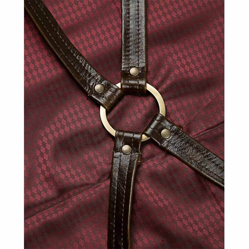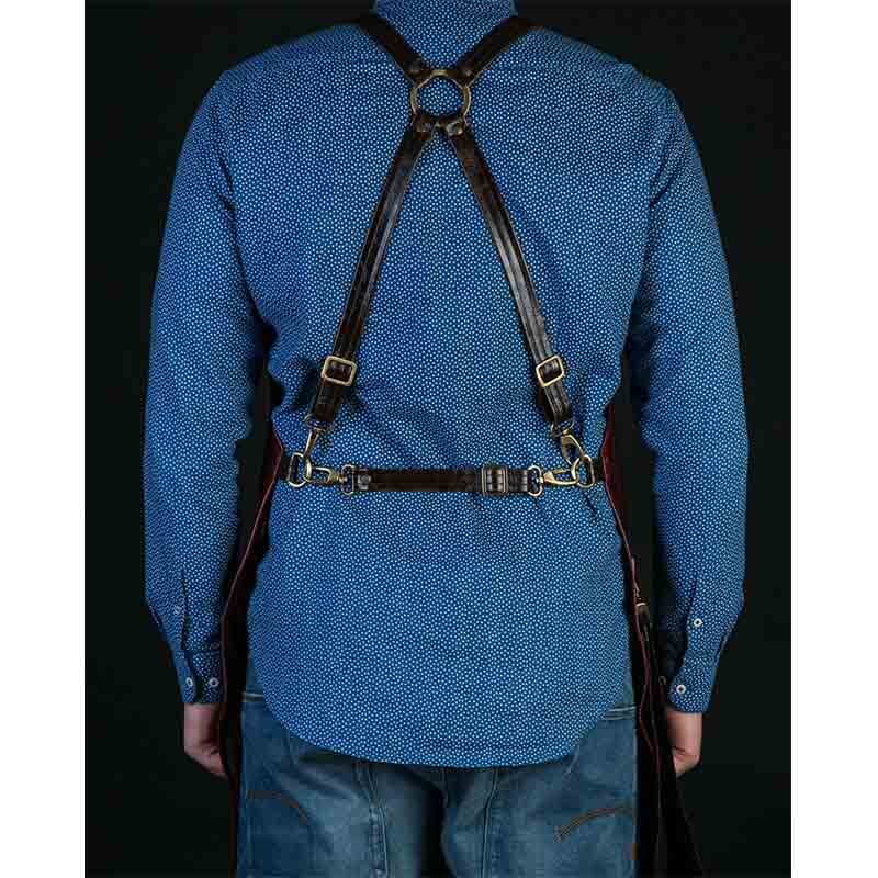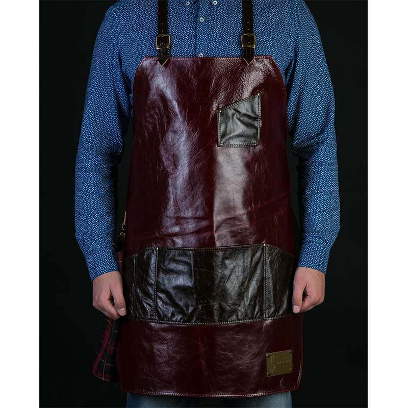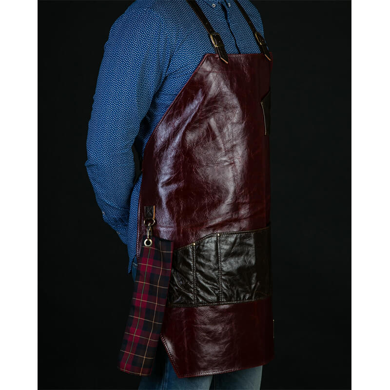 FANCY GENTS 希臘 全真皮 設計款圍裙 後交叉 勃根地紅+深咖啡 NO.3- Leeds Leather Apron(藍格紋棉布)