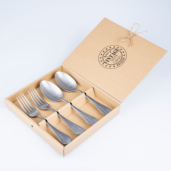 日本AOYOSHI 青芳製作所 Baquette Classic系列 餐具組 4入-復古銀(201516)